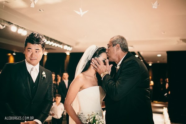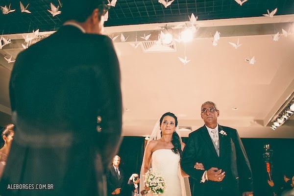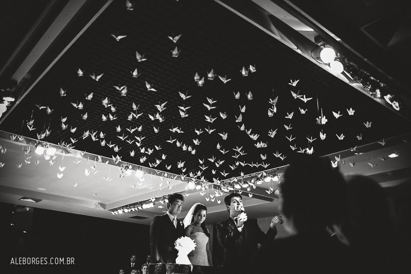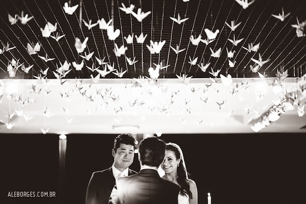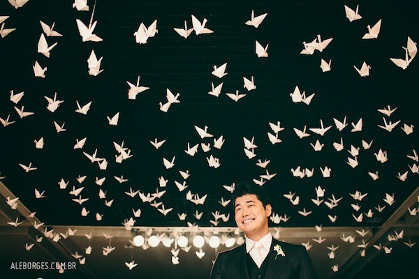 entre os detalhes, muitos tsurus para homenagear a cultura do noivo. A noiva conta: “Queríamos usar tsurus, mas não sabíamos onde. Quando dissemos isso