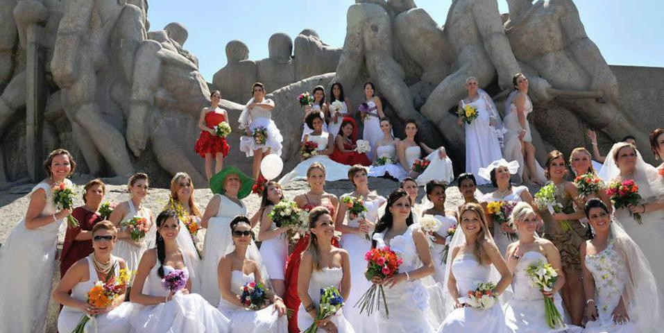 Foto da edição 2012 da marcha de noivas Bride Parade, que é organizada por um dos autores do livro, o celebrante Fredh Hoss (Divulgação)