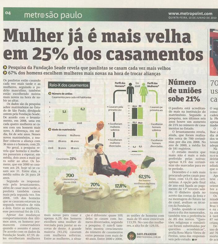 No inicio do mês de junho, saiu uma matéria no Jornal Metro sobre o crescimento do mercado de casamentos e o perfil de seus consumidores.